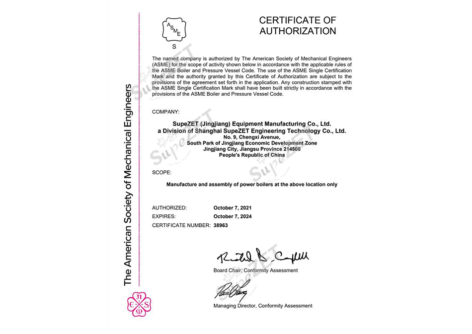 ASME certificate